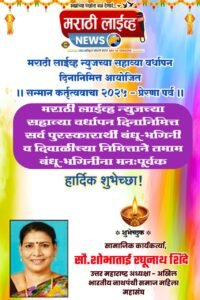 मराठी लाईव्ह न्युज च्या सहाव्या वर्धापन दिनानिमित्त सत्कार कर्तृत्ववाचा 2025 — सामाजिक क्षेत्रातील योगदानामुळे सौ. शोभा रघुनाथ शिंदे यांचा होणार सन्मान