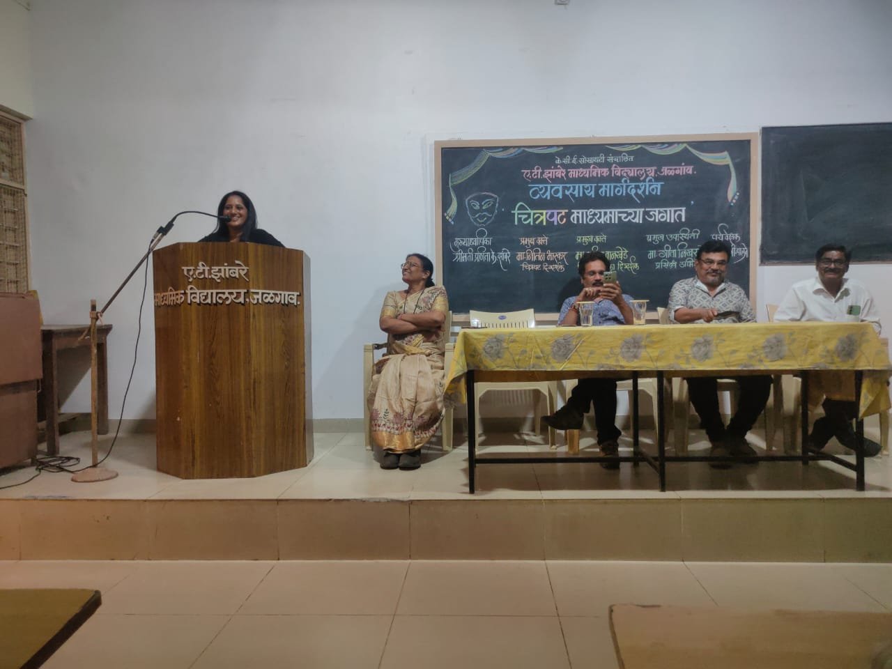 जळगाव – दि. ०७/११/२०२५ ए.टी. झांबरे माध्यमिक विद्यालयात व्यवसाय मार्गदर्शन अंतर्गत ‘चित्रपट माध्यमाच्या जगात’ या विशेष कार्यशाळेचे आयोजन करण्यात आले. विद्यार्थ्यांना करिअरची विविध क्षेत्रे समजून घेण्यासाठी शाळेत हा उपक्रम राबविण्यात आला. कार्यक्रमाच्या अध्यक्षस्थानी मुख्याध्यापिका श्रीमती प्रणिता झांबरे होत्या.