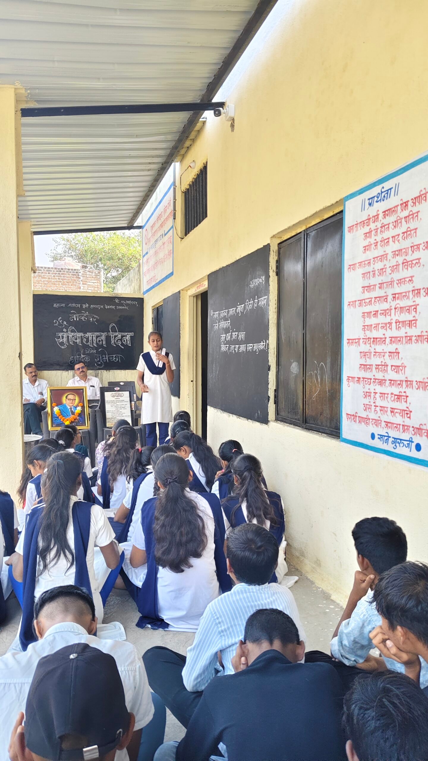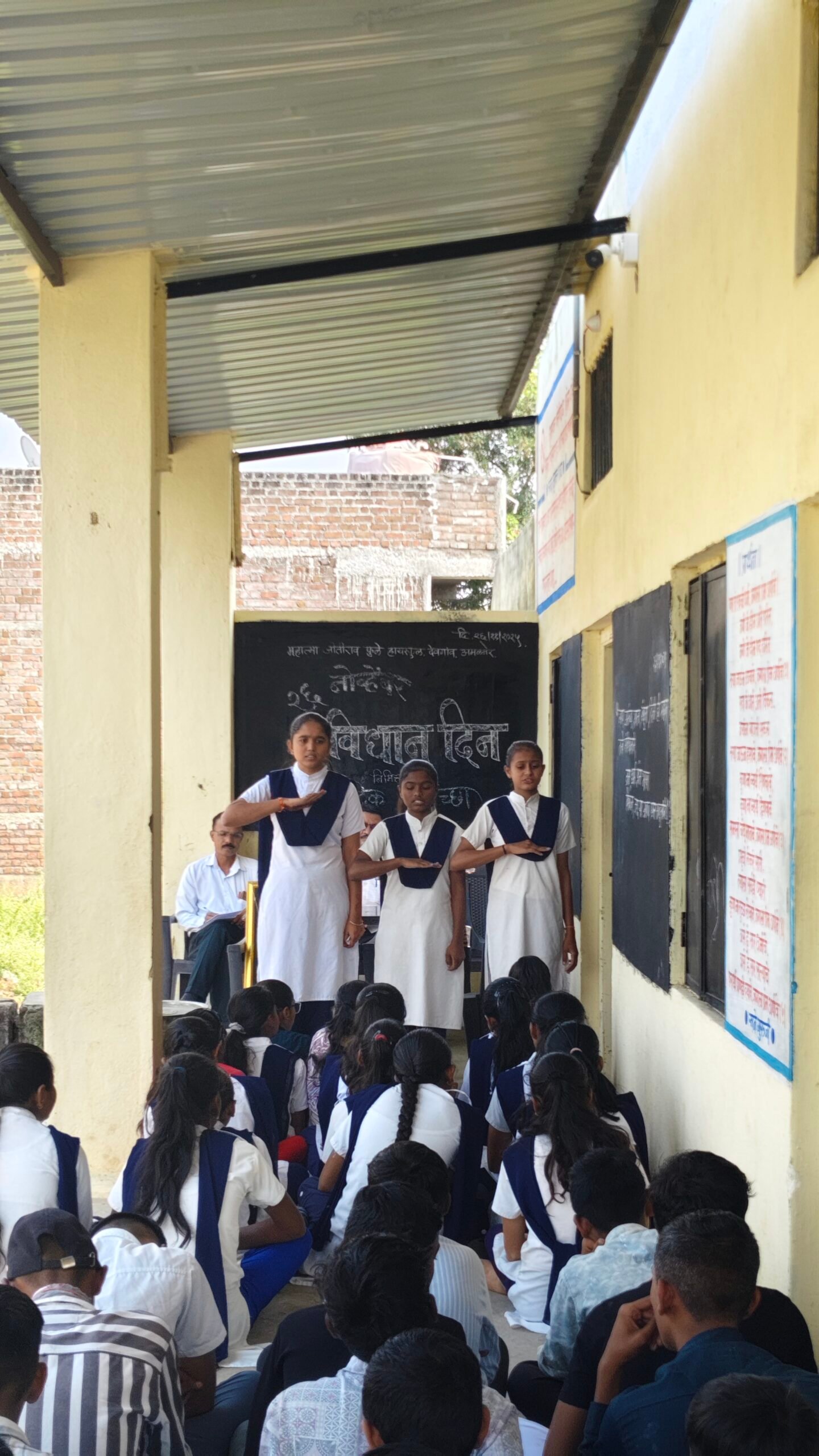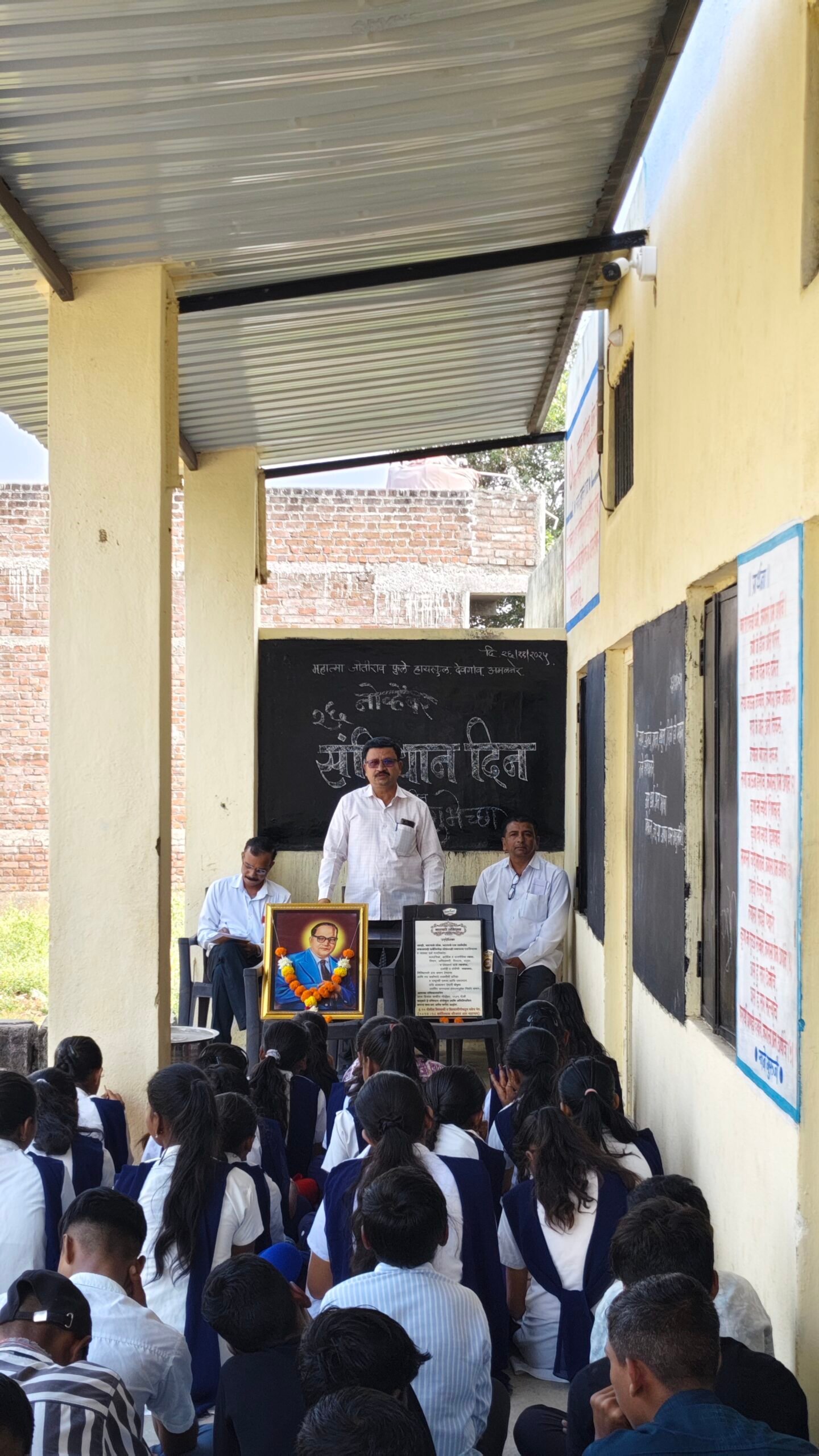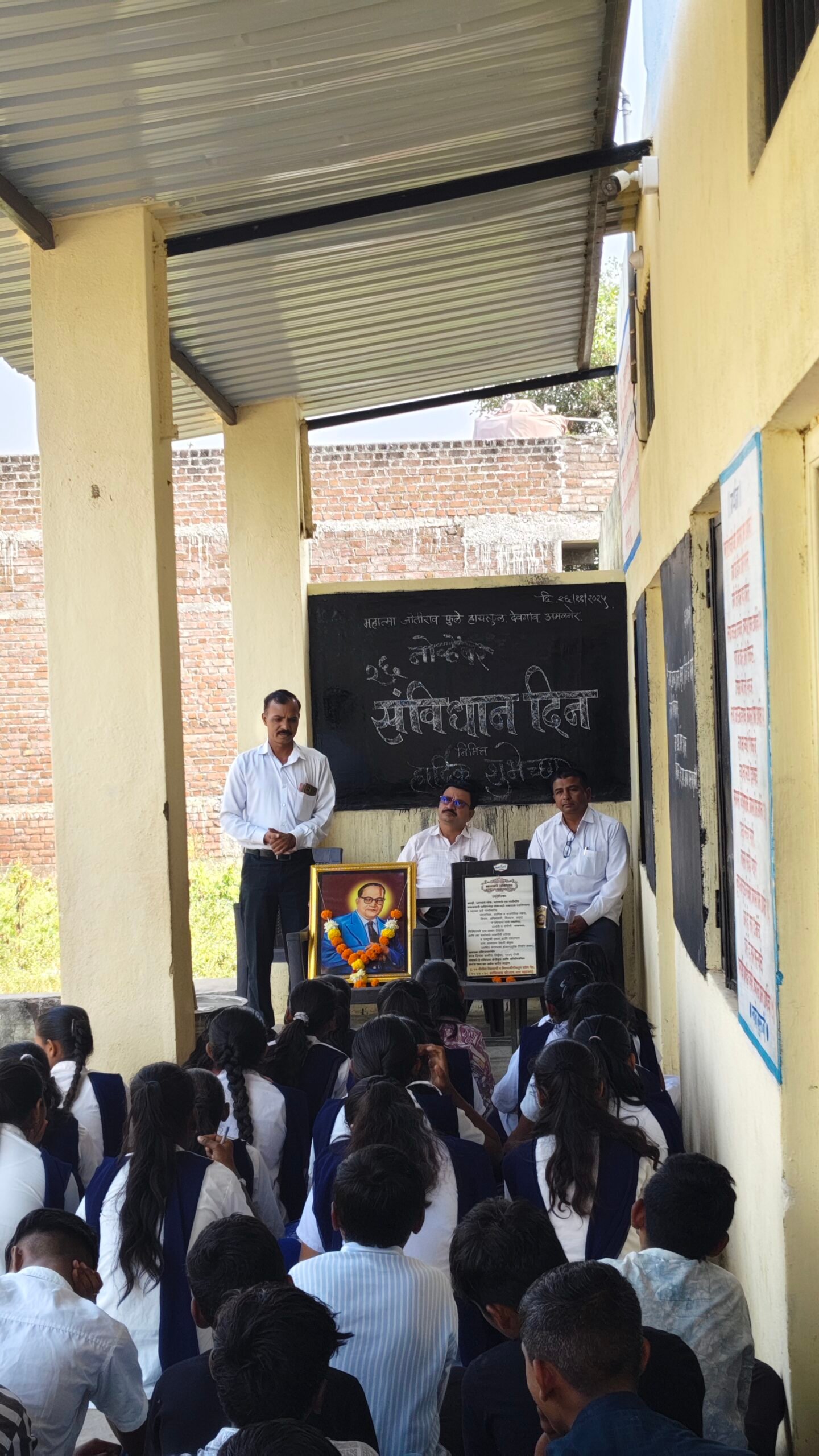सोहळ्याची सुरुवात डॉ. बाबासाहेब आंबेडकर यांच्या प्रतिमेचे पूजन करून करण्यात आली. संविधान दिनानिमित्त शाळेत वकृत्व स्पर्धा आयोजित करण्यात आली, ज्यात इयत्ता आठवी, नववी आणि दहावीतील 22 विद्यार्थ्यांनी संविधानाचे महत्त्व यावर मनोगत व्यक्त केले. स्पर्धेचे परीक्षक स्काऊट शिक्षक एच.ओ. माळी होते. प्रथम, द्वितीय, तृतीय आणि उत्तेजनार्थ विजेत्यांना शाळेच्या बक्षीस वितरण समारंभात पुरस्कार देण्यात येणार आहेत.