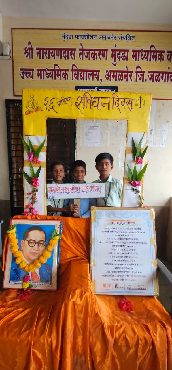 श्री. नारायणदास तेजकरण मुंदडा माध्यमिक व उच्च माध्यमिक विद्यालय अमळनेर… या विद्यालयात… 26 नोव्हेंबर 2025 संविधान दिन म्हणून साजरा करण्यात आला… “भारतीय संविधान आपला अभिमान.”