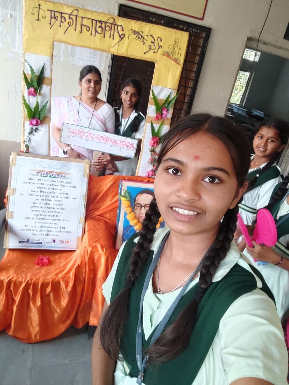 त्या अनुषंगाने आज आमच्या शाळेत *”भारतीय संविधान, आपला अभिमान”* या थिम नुसार शाळेत चित्रकला स्पर्धा हत्तीव सेल्फी पाॅईंट… *I love Constitution* म्हणून विद्यार्थी आणि विद्यार्थी व विद्यार्थिनींनी या कार्यक्रमात उत्साहाने सहभाग घेतला…. शाळेचे पर्यवेक्षक श्री डी. एन. पाटील सर यांनी प्रतिमा पुजन करून कार्यक्रम सुरू झाला याप्रसंगी जेष्ठ शिक्षक श्री सी. एस. पवार सर, श्री.एस.एच.पवार सर,श्री. एच. एम. पाटील सर, श्री. एच. बी. साळुंखे व श्री. डी. बी. पाटील,श्री.बी.बी.पाटील श्रीमती बोरसे मॅडम,श्रीमती पवार मॅडम, श्रीमती भामरे मॅडम, तसेच श्री.व्हि.एन.भाऊसाहेब, व श्री.प्रमोद पाटील ग्रंथपाल शिवाजी पाटील उपस्थित होते. श्रीमती भामरे मॅडम यांनी संविधान दिवसाचे महत्व विद्यार्थ्यांना समजून सांगितले…श्री. डी. एन पाटील सरांनी विद्यार्थ्यांना केले.श्री. एच. एम. पाटील सरांनी सूत्र संचालन केले. संपूर्ण कार्यक्रमाचे नियोजन महिला शिक्षकांनी केले. म्हणून त्यांचे खुप खुप अभिनंदन…
