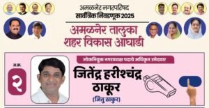 अमळनेर नगरपरिषद निवडणूक 2025 च्या पार्श्वभूमीवर राजकीय समीकरणे वेगाने बदलताना दिसत आहेत. सर्वसामान्य मतदारांच्या मनात निर्माण झालेले वातावरण एकच गोष्ट स्पष्ट सांगत आहे — नगराध्यक्षपदासाठी जितू ठाकूर यांना अभूतपूर्व असा सर्व समाजाचा, सर्व स्तरांचा पाठिंबा मिळत आहे.