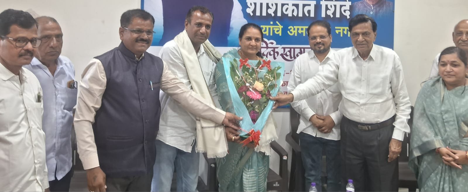 अमळनेर तालुका महाविकास आघाडीच्या वतीने *नगराध्यक्ष डॉ परिक्षीत* *बाविस्कर व उपनगराध्यक्ष प्रशांत* *निकम यांचा सह पत्नी सत्कार करण्यात आला. राष्ट्रवादी* *काँग्रेस शरदचंद्र पवार पक्षाच्यावतीने* सत्कार समारंभाचे आयोजन करण्यात आले होते. कार्यक्रमाच्या अध्यक्षपदी ज्येष्ठ नेते मा *. आमदार आबासाहेब डॉ बी एस* *पाटील होते* . कार्यक्रमाला किसान काँग्रेसचे जिल्हाध्यक्ष तथा कृषी उत्पन्न बाजार समितीचे उपसभापती सुरेश दादा पाटील, बन्सीलाल भागवत, प्रविण जैन, मुन्ना शर्मा, काँग्रेस पक्षाचे शहराध्यक्ष गजेंद्र साळुंखे, देखरेख संघाचे माजी चेअरमन प्रताप आबा, शरद नाना,अरुण बापू देशमुख, राष्ट्रवादी काँग्रेसचे जिल्हा उपाध्यक्ष दिनकर पाटील, महिला जिल्हा अध्यक्ष योजना पाटील, सोनल ताई निकम, जाकिर शेख, शिवसेनेचे तालुकाप्रमुख राजेंद्र भाऊ मराठे, चंद्रशेखर भावसार, देवेंद्र देशमुख, विलास पवार, मनोहर पाटील, माजी केंद्र प्रमुख गोकुळ आबा, कढरे दादा, कृष्णा पाटील, अनिल पाटील जानवे, चिंधू वानखेडे, अनंत निकम, विविध संस्थांचे प्रतिनिधी, कार्यकर्ते बंधू भगिनी उपस्थित होते. कार्यक्रमाचे सूत्रसंचालन व आभार प्रदर्शन राष्ट्रवादी काँग्रेसचे तालुका अध्यक्ष डी एम पाटील सर यांनी केले. कार्यक्रमाच्या यशस्वीतेसाठी वासुदेव मामा, शांताराम कोळी, हरीश लाड, भटू पाटील , सुभाष पाटील मारवड यांनी परिश्रम घेतले.