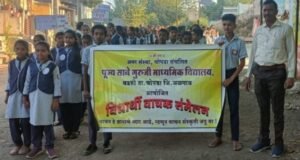 🔰 विद्यार्थ्यांनी गावातील प्रमुख चौकातून काढली ग्रंथदिंडी ; वाचन संस्कृतीच्या वाढीसाठी घोषणा देऊन ग्रामस्थांचे वेधले लक्ष