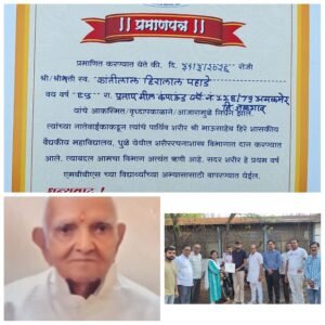 अमळनेर प्रतिनिधी: “अवयव स्वर्गात नव्हे, पृथ्वीवरच उपयुक्त ठरतात,” या उदात्त विचाराला कृतीत उतरवत अमळनेर येथील पहाडे कुटुंबाने देहदानाचा समाजाभिमुख निर्णय घेत मानवतेचा जिवंत आदर्श निर्माण केला आहे. त्यांच्या या प्रेरणादायी उपक्रमामुळे शहरात अवयवदान व देहदानाबाबत सकारात्मक जनजागृतीला नवी दिशा मिळत आहे.