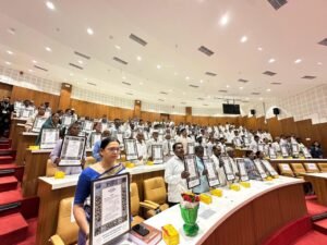 साहित्य अकादमी पुरस्कार विजेते राजू बाविस्कर यांनी आपल्या मनोगतात वंचित समाजाच्या वेदना, दारिद्र्य आणि सामाजिक विषमतेचे वास्तव अधोरेखित केले. आपल्या लेखन व चित्रकलेतून उपेक्षित घटकांचे जीवन मांडण्याचा प्रयत्न करत असल्याचे सांगत त्यांनी समाजाने अधिक संवेदनशील होण्याची गरज व्यक्त केली. शिक्षणाच्या माध्यमातून परिवर्तन घडवून आणण्यावर भर देत, डॉ बाबासाहेब आंबेडकरांनी दिलेल्या ज्ञानाच्या मार्गावर चालण्याचे आवाहन त्यांनी केले. आपल्या साहित्याला मिळालेला सन्मान हा वैयक्तिक नसून संपूर्ण समाजाचा आहे, तसेच हा गौरव जळगाव जिल्ह्याचा असल्याची भावना त्यांनी व्यक्त केली.